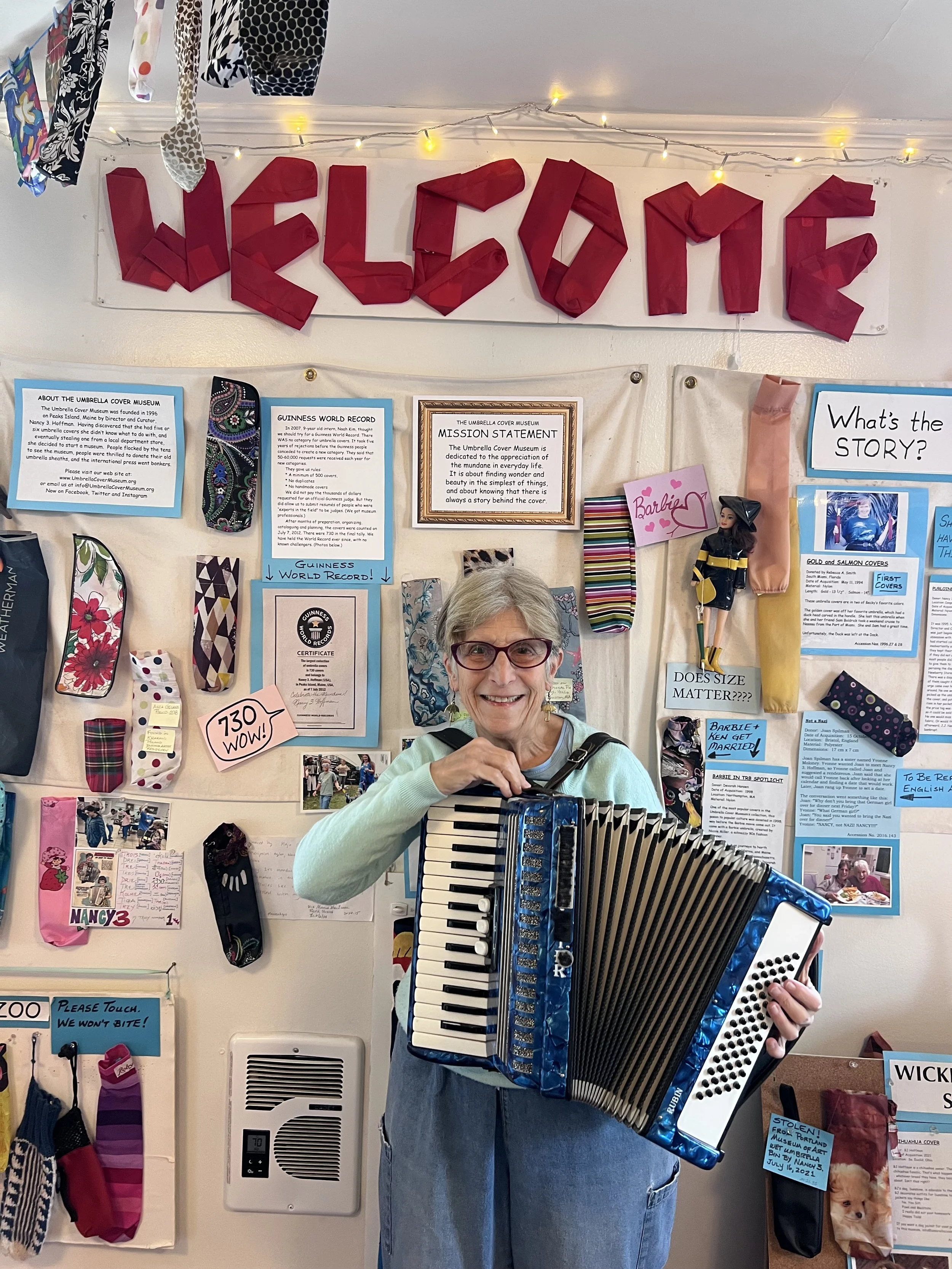 A three-page feature, authored by me, will be published in the next print issue of Artypants Magazine. The article will spotlight the world’s only “Umbrella Cover Museum” curator, musician Nancy 3. Hoffman, highlighting her artistic perspectives and contributions to the Peaks Island community.
